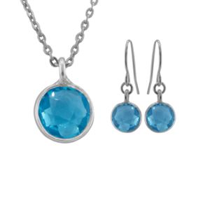 Blue Quartz Necklace & Earrings Set, 7mm