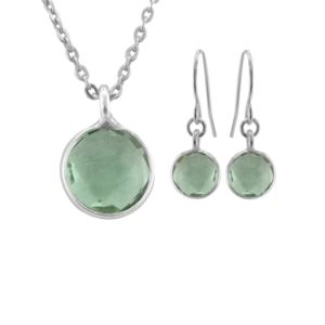 Green Quartz Necklace & Earring Set, 7mm