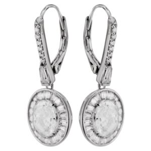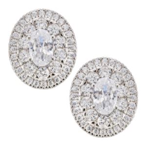 Silver CZ Oval Stud Earrings-2.00 CT