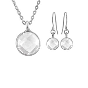 Clear Quartz Necklace & Earrings Set, 7mm