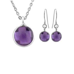 Amethyst Quartz Necklace & Earrings Set, 7mm