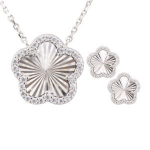 Sterling Silver CZ Flower Earring and Necklace Set