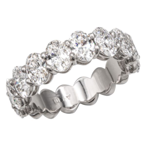 Antwerp diamonds elegant "Oval 0yster" diamond wedding band in platinum set with 10 oval cut diamonds totaling 3 carats. This is an elegant straight row wedding band custom made with oval diamonds circling 75% around the finger. It is expertly set by our master craftsmen. All diamonds are perfectly matched for this custom made ring. Sizing bar at bottom of ring. Ovals set vertically. (Size: 6; Color: Platinum;)