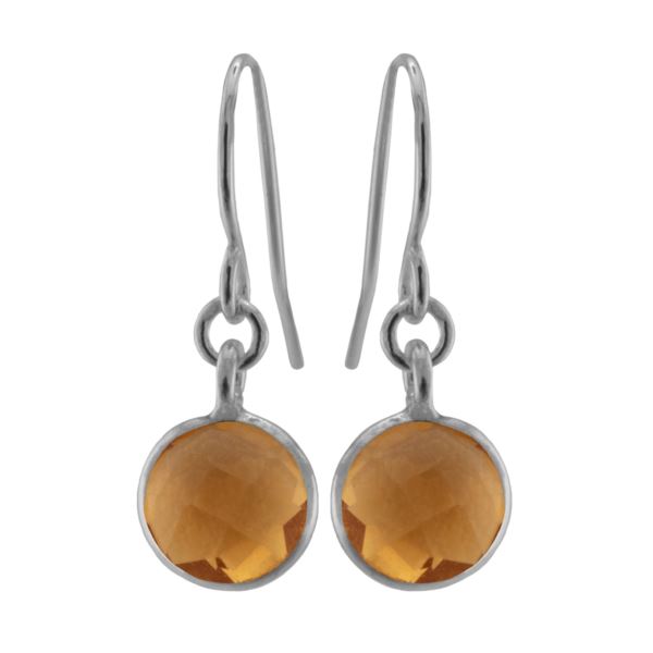Citrine Quartz Dangle Earrings, 7mm