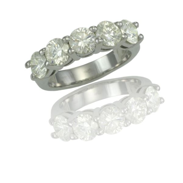 Our beautifully classic five diamond wedding band illuminates unsurpassed brilliance. Stunning matched round brilliant cut diamonds and gleaming 14kt white gold combine in a simple design she can wear for all occasions. A prong basket style setting lets the true beauty of the diamonds shine through. 5 round brilliant cut diamonds weighing 2.50 carats. standard sizes 5-7. (Size: 13; Color: White Gold;)