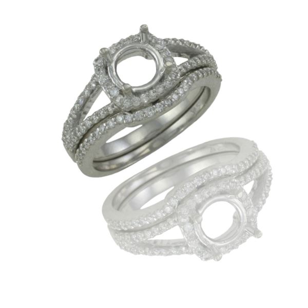 wedding band with engagement ring. bridal set. 14k white gold. 86 round brilliant diamonds totaling .50 carats. 6.5 mm round setting for center diamond. precision set by our jewelers. (Size: 2; Color: White Gold;)