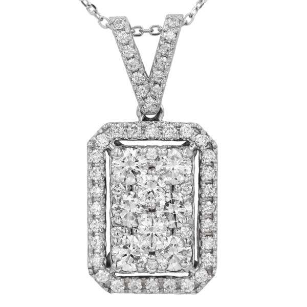 Elevate your style with this exquisite diamond halo pendant with a top split bail, featuring 32 brilliant-cut diamonds totaling 1.24 carat. Expertly crafted in your choice of 14K white or yellow gold. The pendant measures 25mm long and 11.5mm wide, paired with a 16 inch cable chain. Perfect for layering or wearing solo as a statement of refined luxury. All diamonds are imported from Antwerp Belgium, the diamond capital of the world. Hand-set by our master craftsman in the USA.