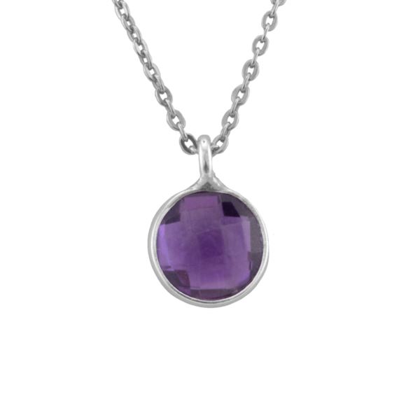 This minimalist necklace features a single 7mm round amethyst quartz, bezel set in sterling silver for a clean, polished look. The rich violet stone adds a subtle pop of color, perfectly balanced by the simplicity of a 16" sterling silver cable chain. Elegant and versatile, it's a timeless piece designed for effortless everyday wear or layering.