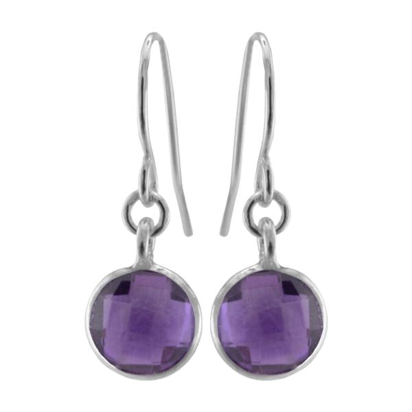 Amethyst Quartz Dangle Earrings, 7mm