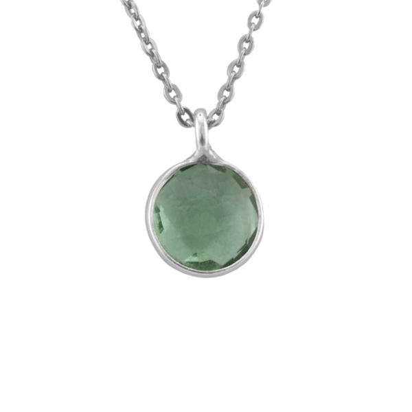 This minimalist necklace features a single 7mm round green quartz, bezel set in sterling silver for a clean, polished look. The rich green hues adds a subtle pop of color, perfectly balanced by the simplicity of a 16" sterling silver cable chain. Elegant and versatile, it's a timeless piece designed for effortless everyday wear or layering. Matching ER260317 earrings.