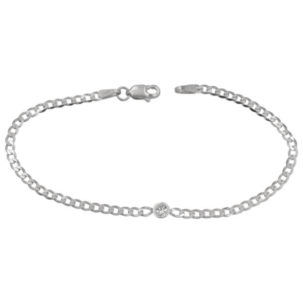 Single Diamond Bezel Bracelet in 14k white gold with 1 round brilliant cut diamonds=.08 ct