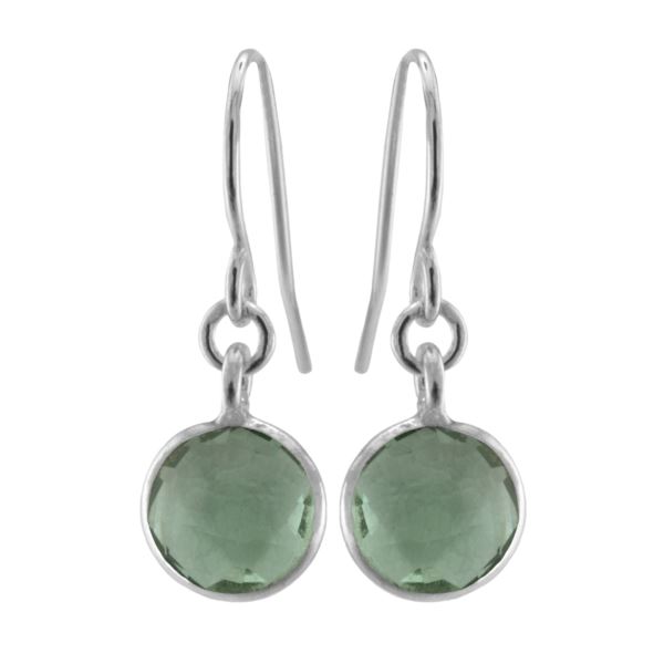 These minimalist earrings feature 7mm round green quartz stones, elegantly framed in smooth sterling silver bezel settings. The rich green hues add a subtle pop of color while flowing seamlessly into the clean, refined design. Suspended from simple french wires, they offer gentle movement and effortless wear. Versatile and timeless, they're perfect for both everyday styling and special occasions. Matching PD260317 necklace.