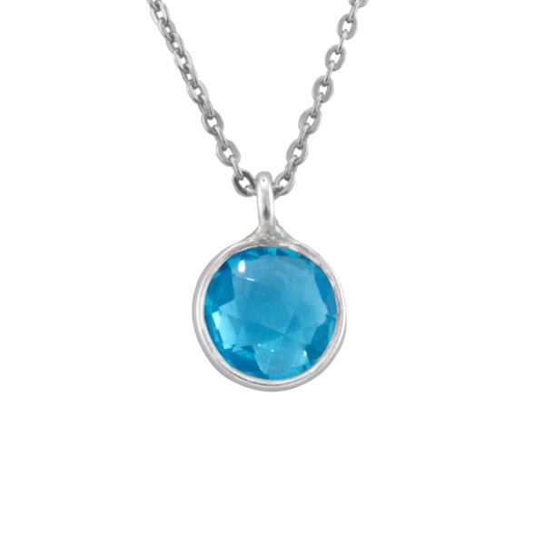 This minimalist necklace features a single 7mm round blue quartz, bezel set in sterling silver for a clean, polished look. The rich blue stone adds a subtle pop of color, perfectly balanced by the simplicity of a 16" sterling silver cable chain. Elegant and versatile, it's a timeless piece designed for effortless everyday wear or layering. Matches ER260312 earrings.