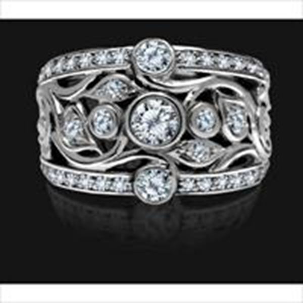 A beautiful right hand fashion ring or wedding band combo filled with diamonds. The ring's wide band makes this pieces design uniquely refined. 14 K gold. 65 round brilliant diamonds. TW 1.00 CT. Cut to perfection in Antwerp. Color H. Clarity SI1-2,requires a jewelers loop to see any phenomena. sizes 5-7 standard, wide band. (Size: 6; Color: White Gold;)