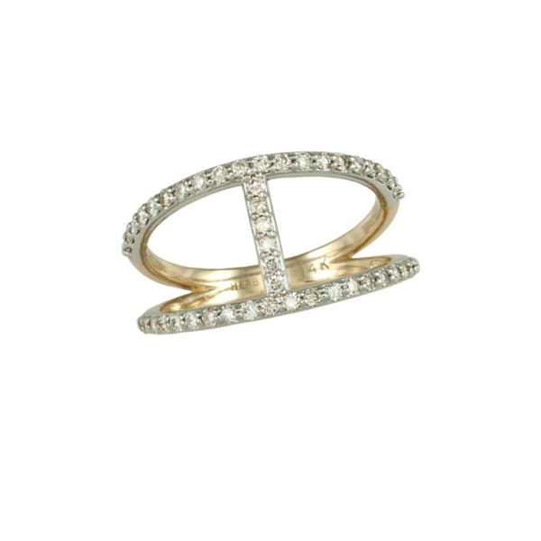 Our beautiful diamond straight-bar fashion ring shimmers with simplicity and glamour. Created in 14kt gold, this ring is encrusted with 46 brilliant cut diamonds weighing .50 carat. This piece tapers down in back for easy wear and comfort for ladies of all ages. It instantly elevates daytime staples and evening looks alike. (Size: 5; Color: Yellow Gold;)