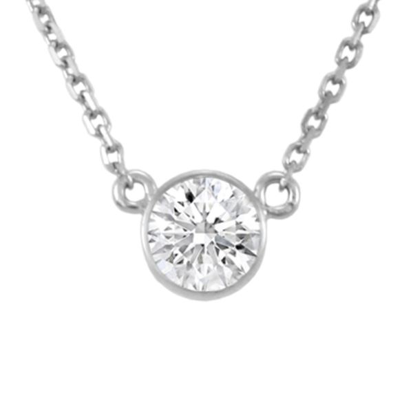 Antwerp Diamonds "Wonder" Necklace is truly a timeless classic. This beautiful piece is made in 14KT Gold with a center .13 carat round brilliant cut diamond. Wear this simple yet fashionable delicate design individually as a statement piece or layer it with complementing styles. The touch of sparkle adds to any ensemble and makes it the ultimate accessory. The bezel set diamond is attached by a 14KT Gold 16" cable cut chain. Each diamond is handset by our master craftsman. (Color: White Gold;)