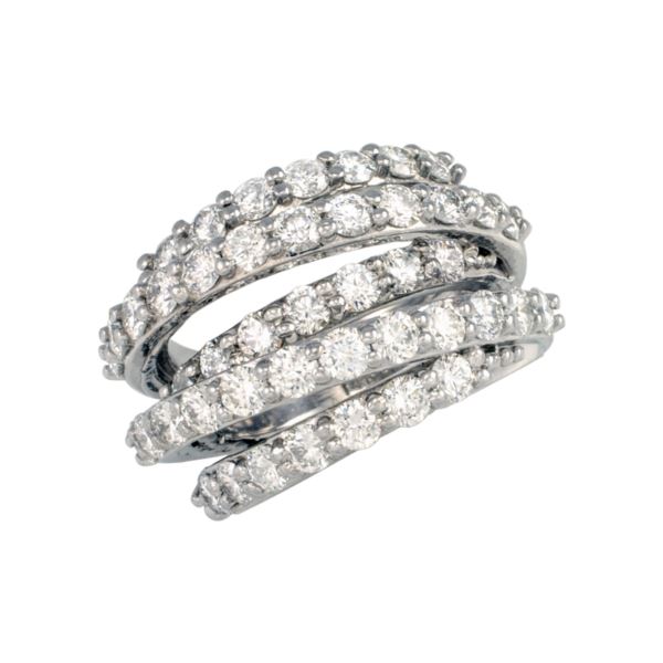 Antwerp "Roller Coaster" fashion diamond band in 14k white gold with 45 round brilliant diamonds totaling 3.75 carats. an extraordinary 5 row, multi level diamond ring which can be a beautiful wedding band. each diamond is prong-set by our master craftsmen. this ring is a fashion forward style in horizontal and vertical bars. 17 mm width at the top. (Size: 11; Color: White Gold;)