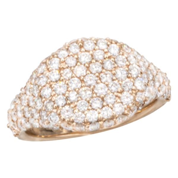 Our Pave Diamond "Signet style" Ring in 14kt gold features 107 round brilliant cut diamonds totaling 1.60 carats. A contoured, smooth setting studded with glittering pavé diamonds adds an exquisite modern twist to this jewelry piece. The perfect start for a stunning stand alone fashion ring, enjoy this ring in sizes 5-7 with special sizes upon request. (Size: 5; Color: Yellow Gold;)