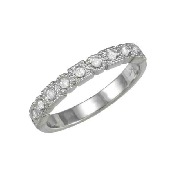 Antwerp's vintage square and circle diamond band is set in 14KT gold. This piece is accentuated by a beautiful milgrain edge and detailing. It features 11 brilliant cut diamonds totaling approx .17 ct tw. A unique and delicate piece that is perfect for any woman. All diamonds average H Color and SI Clarity. All of our diamonds are hand-picked in Antwerp, Belgium, the diamond capital of the world. 4 mm width (Size: 6; Color: White Gold;)