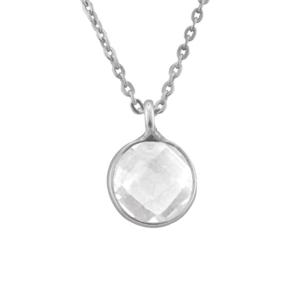 Clear Quartz Bezel Necklace, 7mm round clear quartz