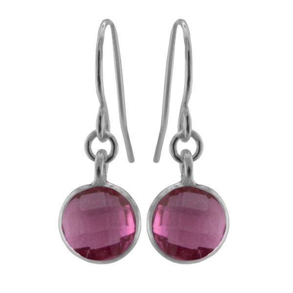 These minimalist earrings feature 7mm round pink quartz stones, elegantly framed in smooth sterling silver bezel settings. The rich pink hues add a subtle pop of color while flowing seamlessly into the clean, refined design. Suspended from simple french wires, they offer gentle movement and effortless wear. Versatile and timeless, they're perfect for both everyday styling and special occasions. Matching PD260316 necklace.